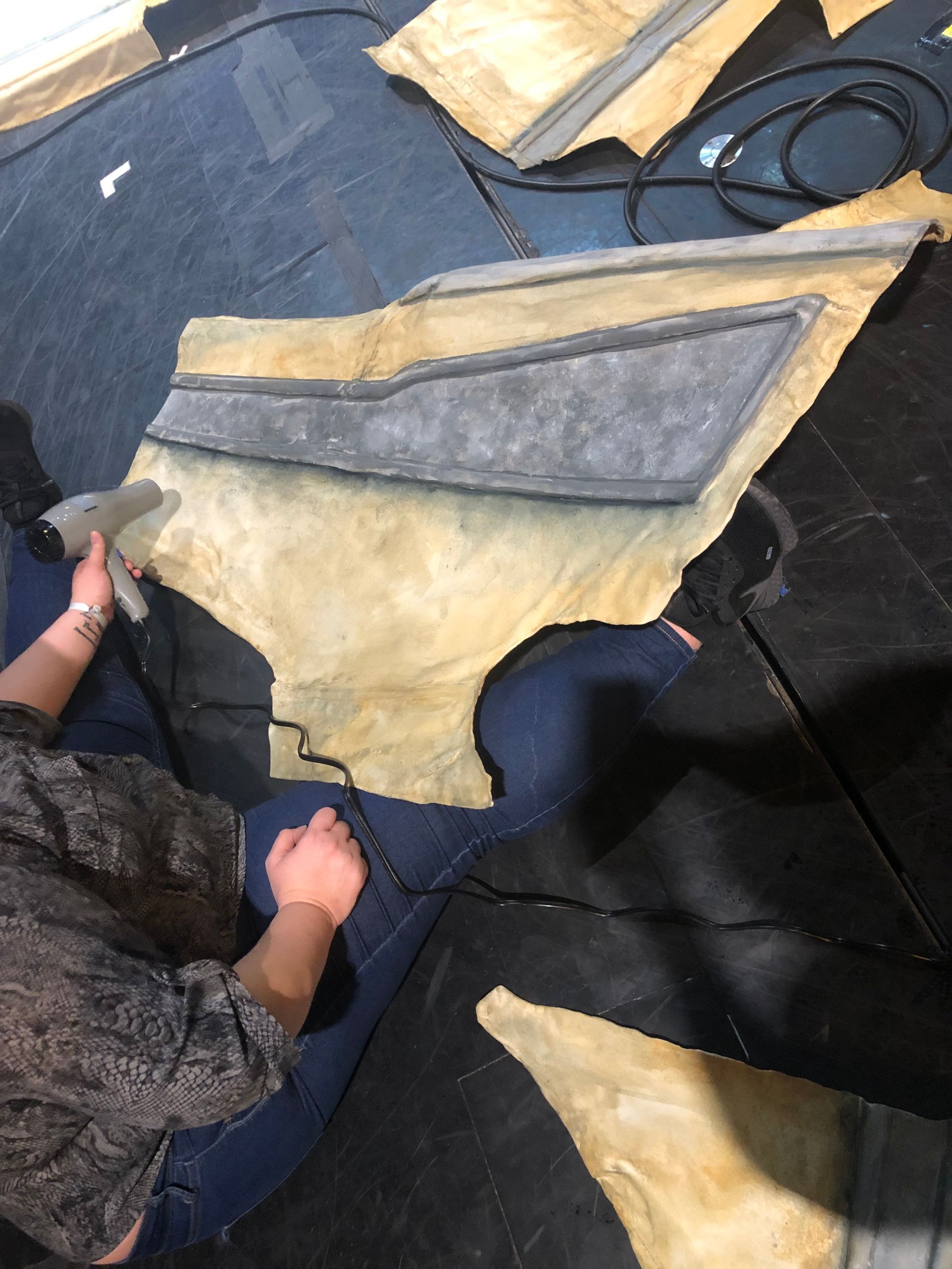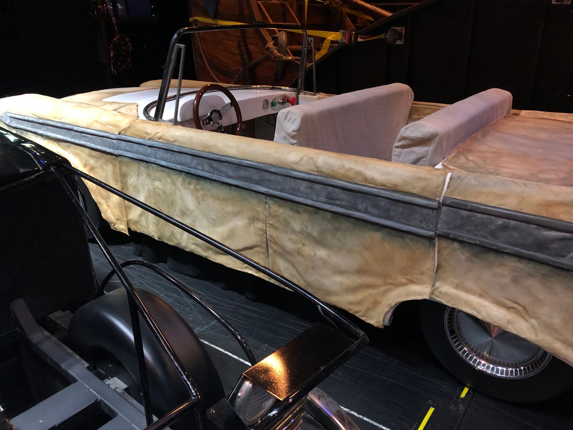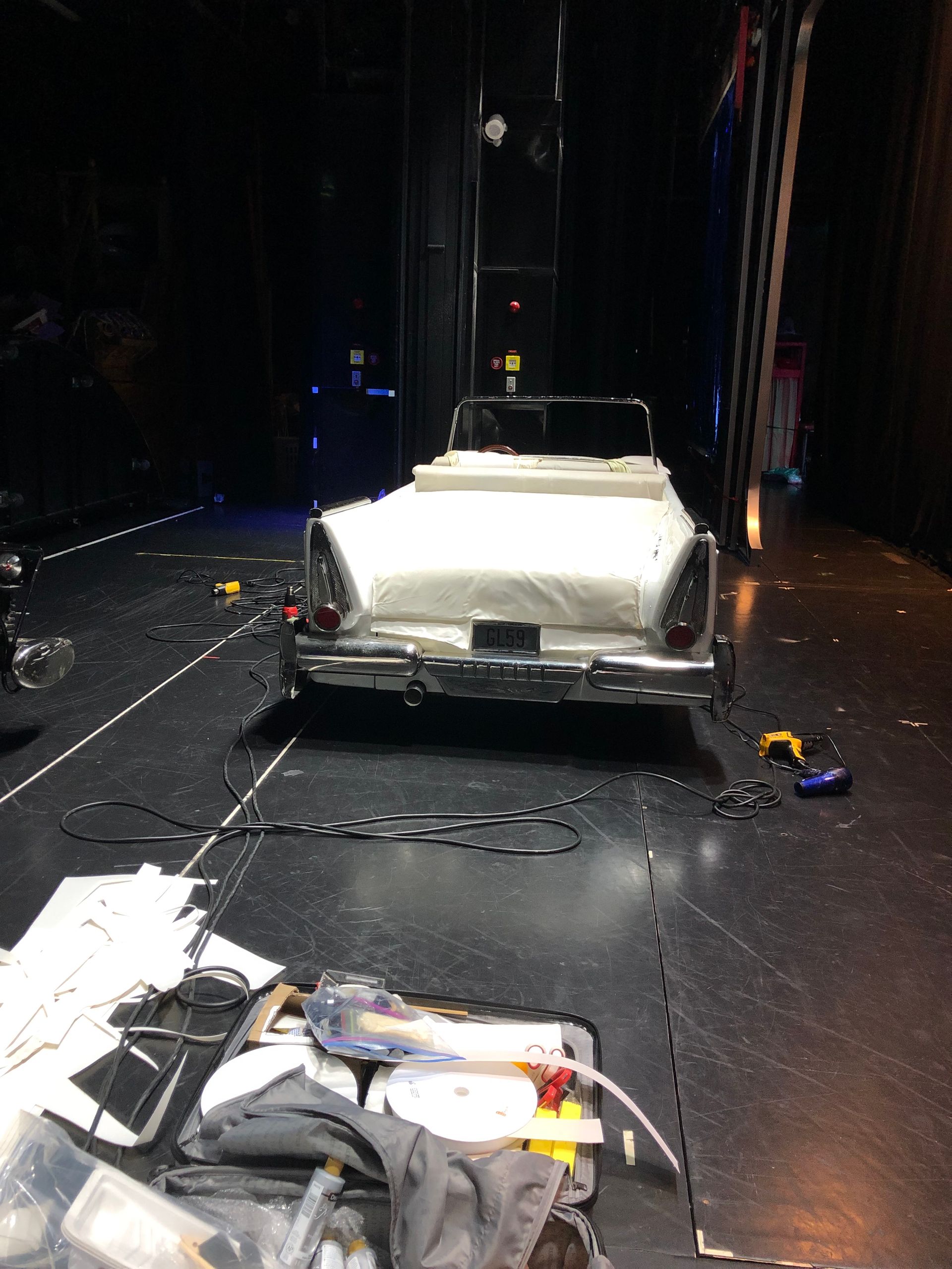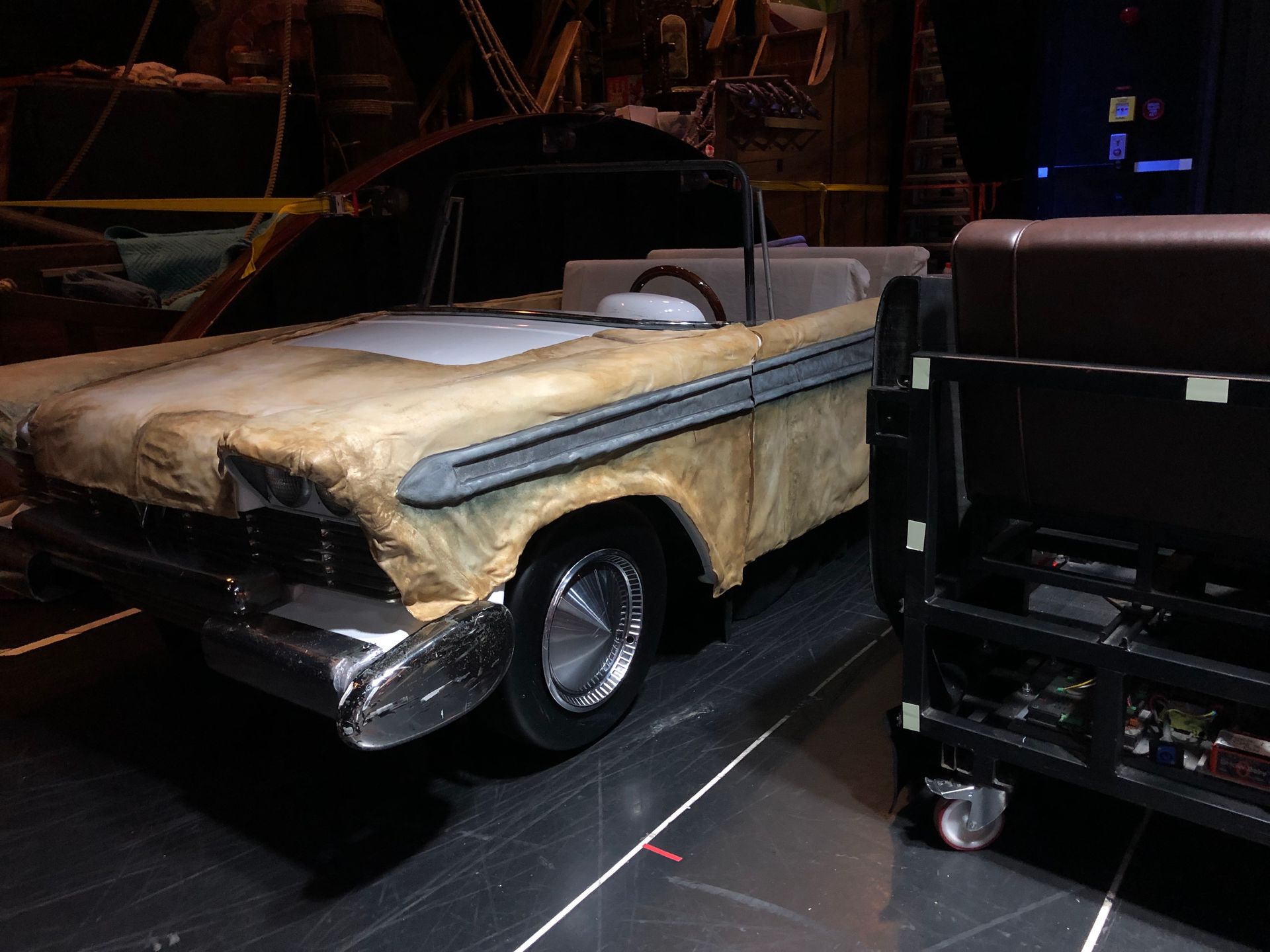 Royal Caribbean's Harmony of the Seas has daily performances of the broadway show "Grease", which includes the famous "Greased Lightning" transformation; going from a dirty beat up car to a beautiful new one. The car cover, was in need of repair, so Bombshell stepped in.