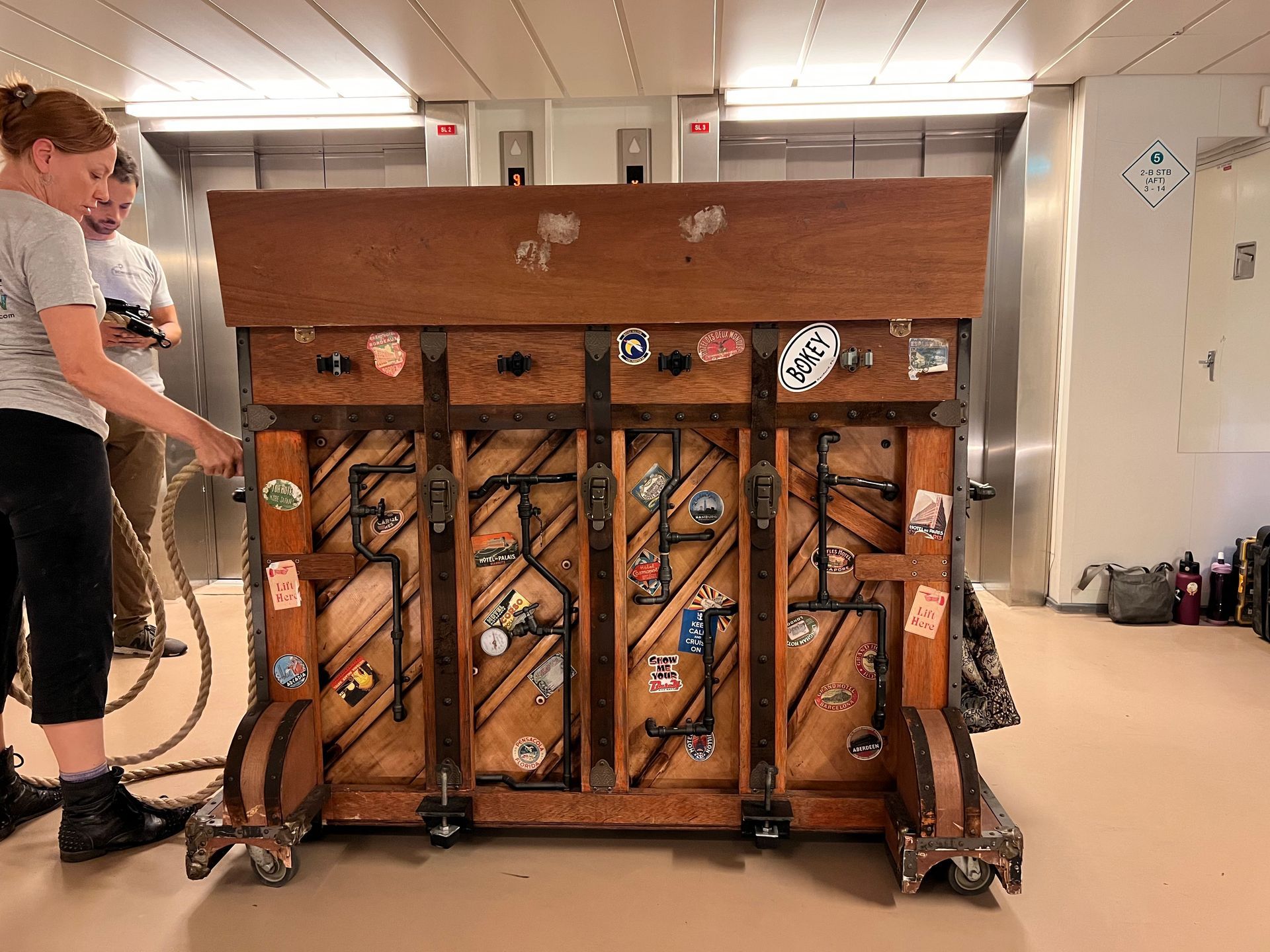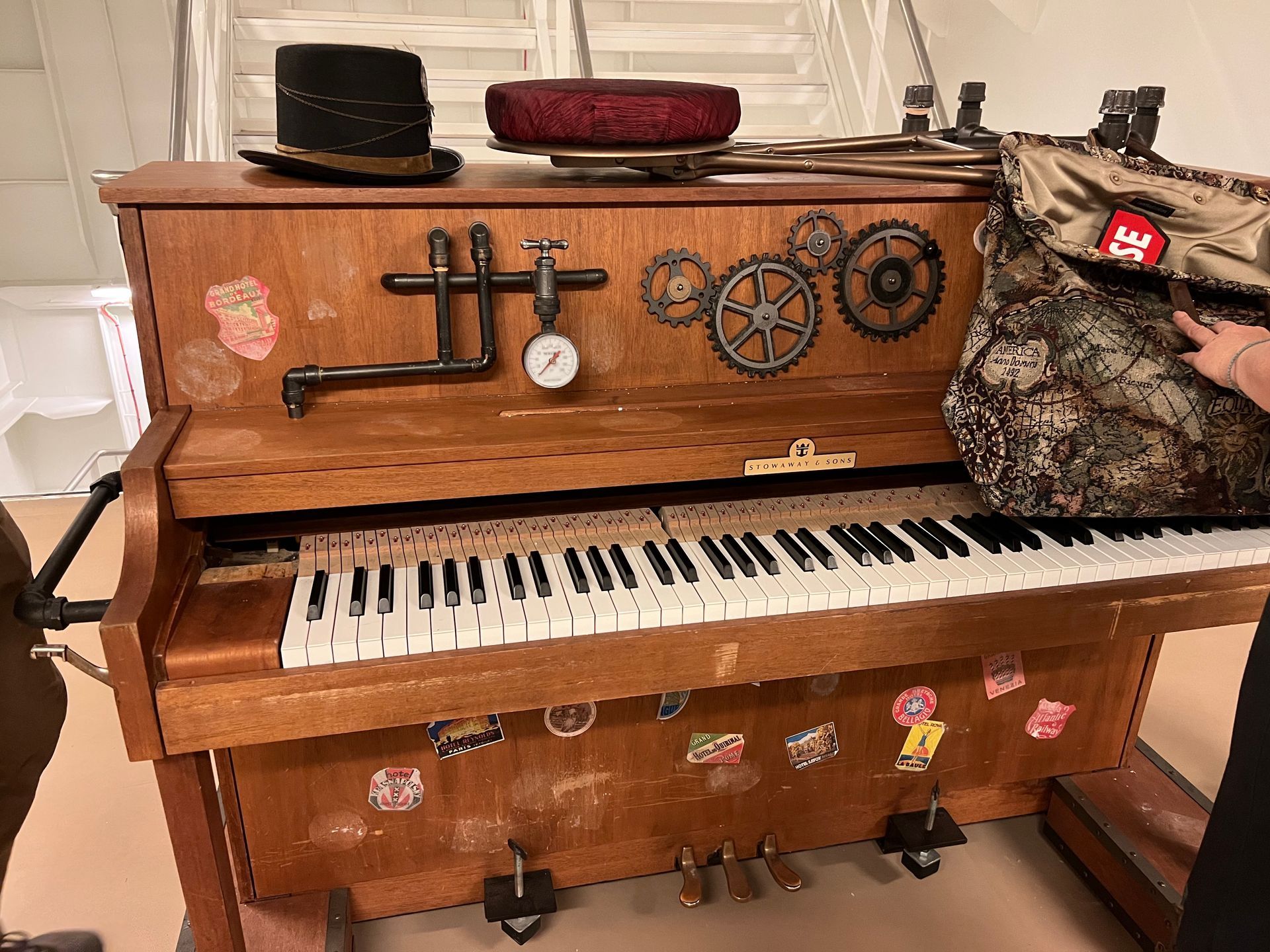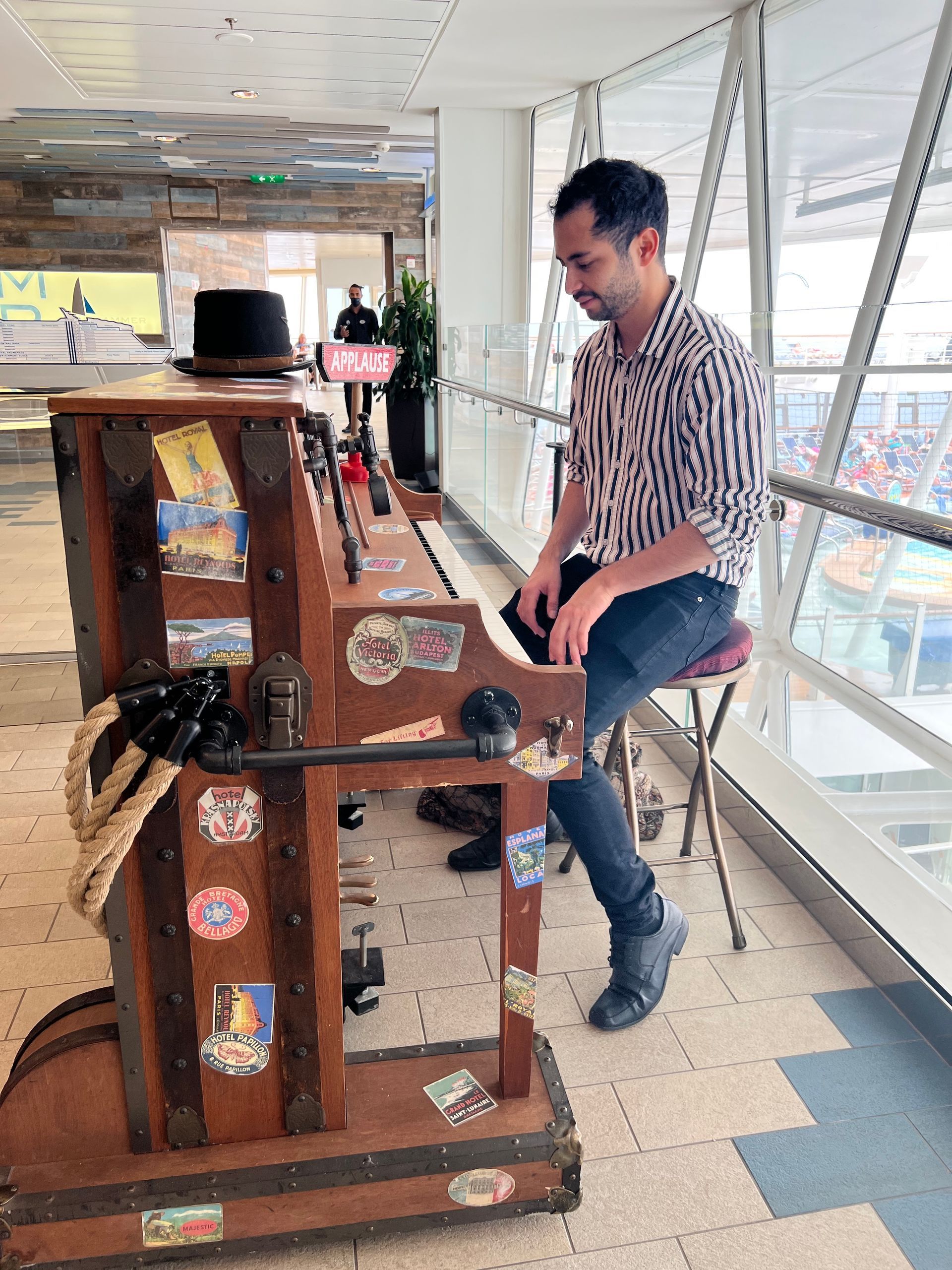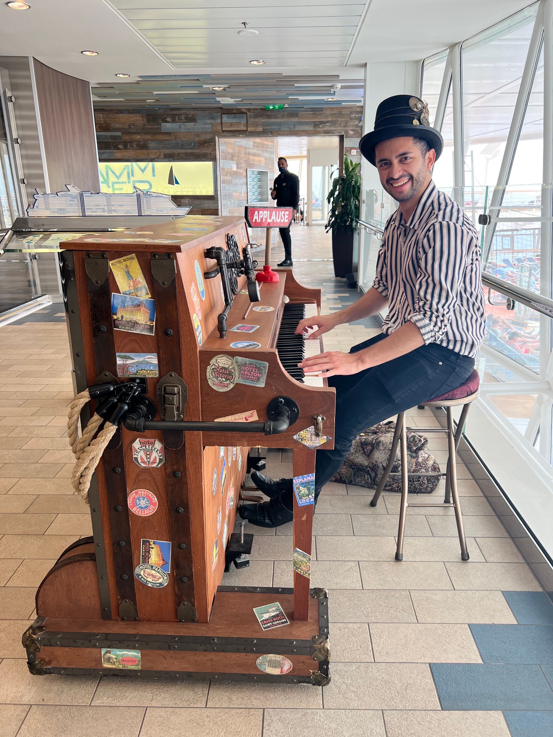 Royal Caribbean's Harmony of the Seas has performances of the broadway show "Grease". This includes a fully designed set, which was in need of repair. In addition, the "Stowaway Piano" was in need of repair, it is an on-board piano with a pianist who randomly materializes anywhere on the ship to entertain guests.