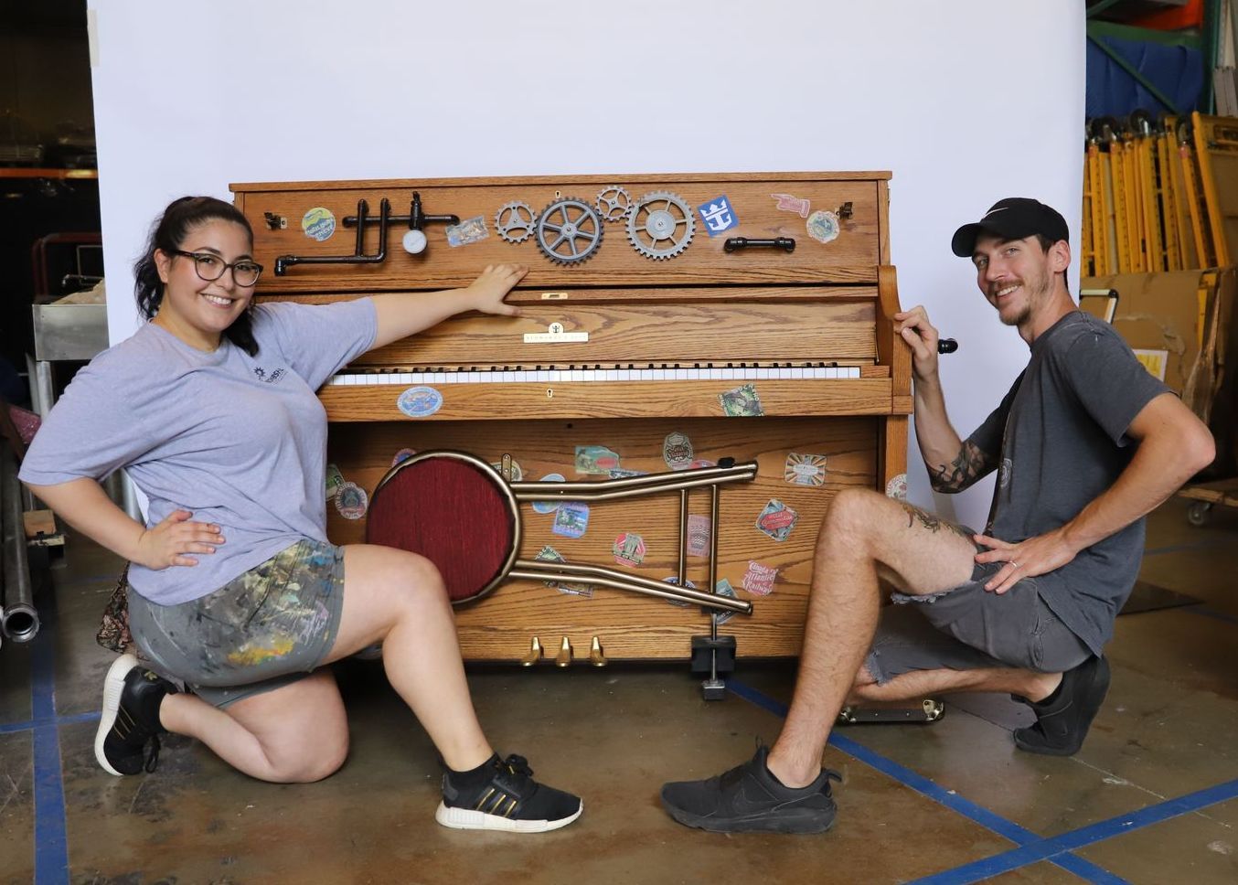 The "Stowaway Piano" is an on-board piano with a pianist who randomly materializes anywhere on the ship to entertain guests. Bombshell designs and retrofits standard pianos, while maintaining their ability to function as musical instruments.